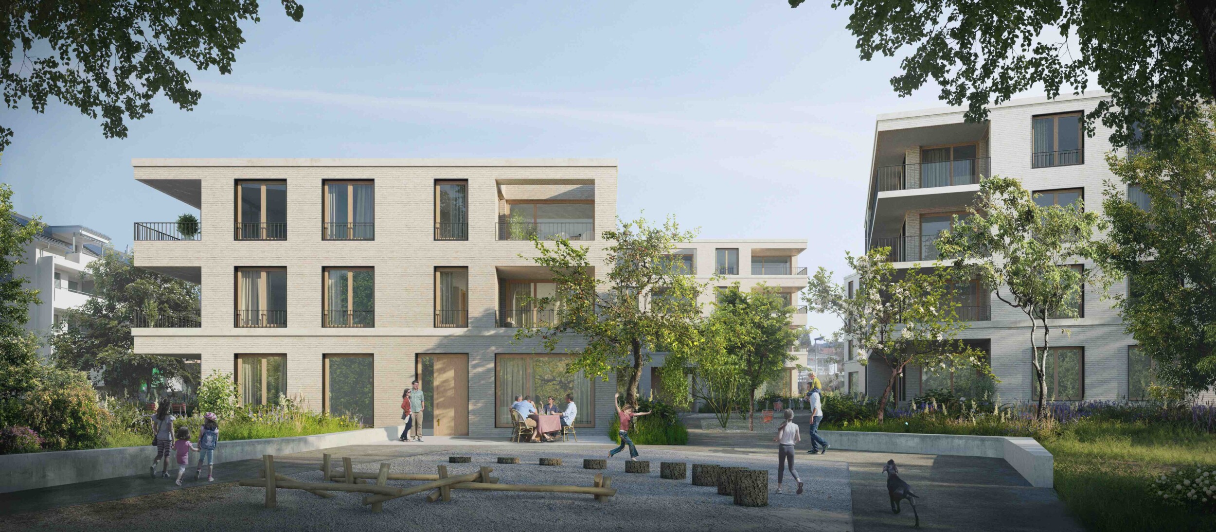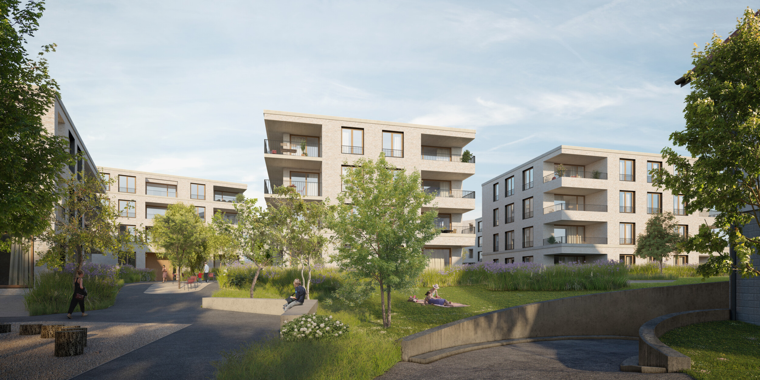 Die Gebäude lehnen sich insbesondere bezüglich der Fassade und der Grundstruktur an das örtliche Baumeisterhaus an. Analog bestehen die Gebäude aus einem Sockelgeschoss, zwei Stockwerken und einem Abschluss mit Dachgeschoss. Die Fassaden sind aus einem warmen Backstein (aus europäischer Produktion, in der Schweiz wird der Stein nicht mehr produziert). Ein spezielles Treppenhauskonzept nimmt Rücksicht auf die Bewohnerstruktur (ältere Bewohner oder junge Familien).