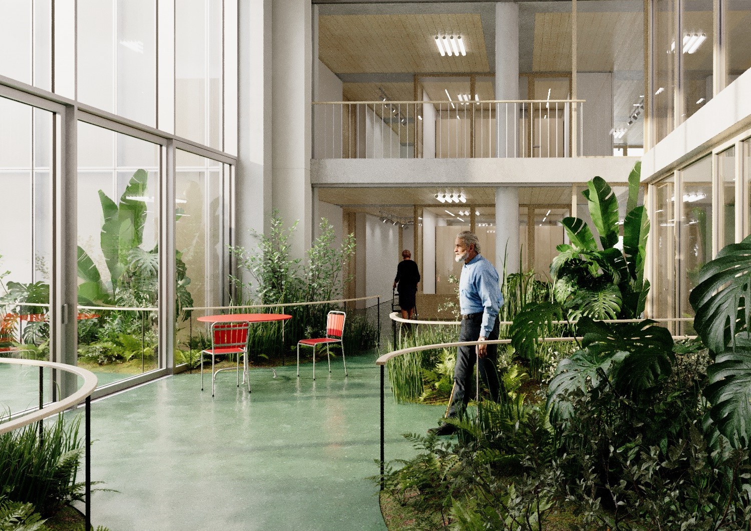Das Gebäude wird über vielfältige und abwechslungsreiche Räume verfügen, wobei Terrassen und Wintergärten räumlich und sozial mehrere Geschosse miteinander verbinden. Die Raumplanung der Oase Winterthur umfasst zusätzlich: